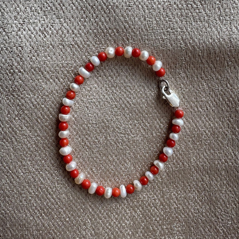 Elegante Bloedkoraal Armband met Parels